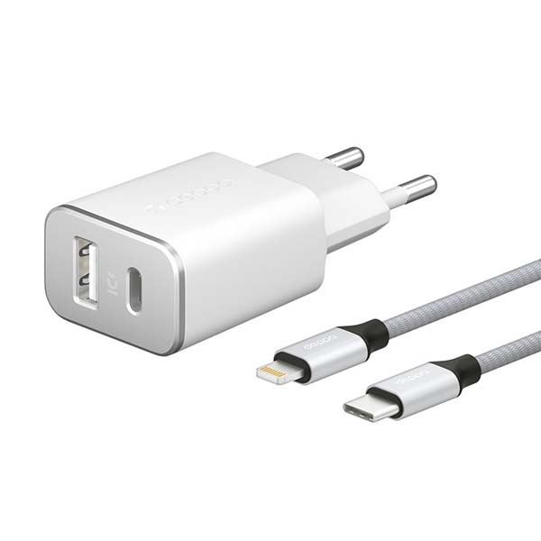 Deppa USB-C+USB-A, PD 3.0,каб.USB-C-Lightning MFI белый