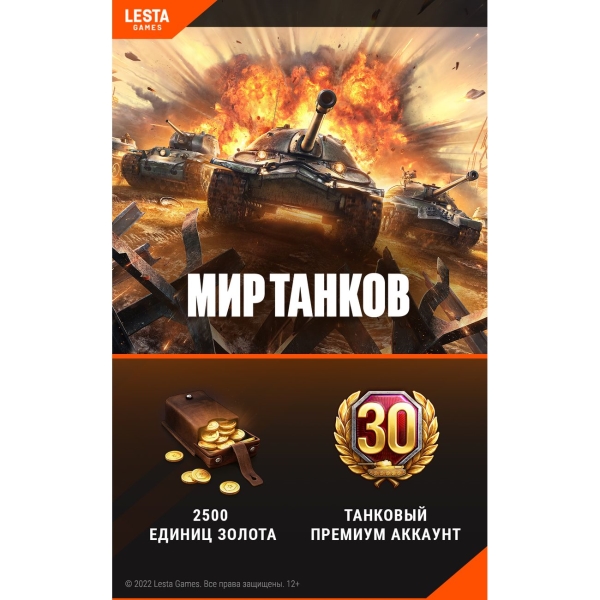 Wargaming World of Tanks - 2500 Золота + 30 дней премиум