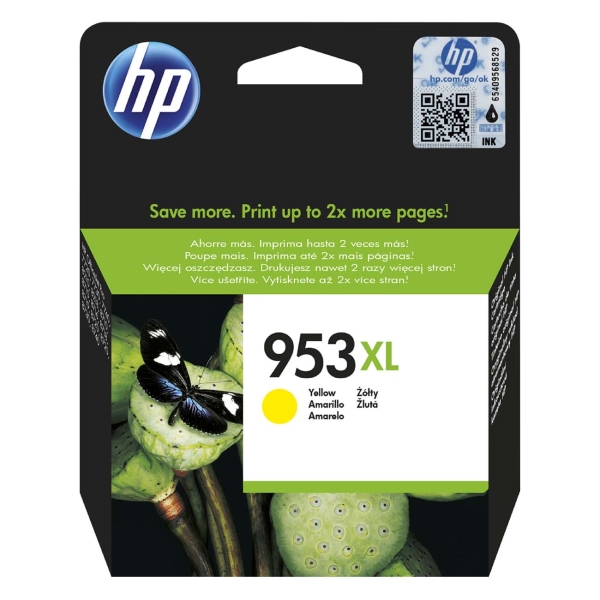 Номер картриджа: 953XL, Совместимость: OfficeJet Pro 8210, 8218, 8720, 8725, 8730, 8740, Объем цветных чернил: 20 мл, Цвет чернил: желтый, Картридж повышенной емкости: Да, Картриджей в комплекте: 1 шт, Ресурс цветного картриджа (A4): 1600 стр