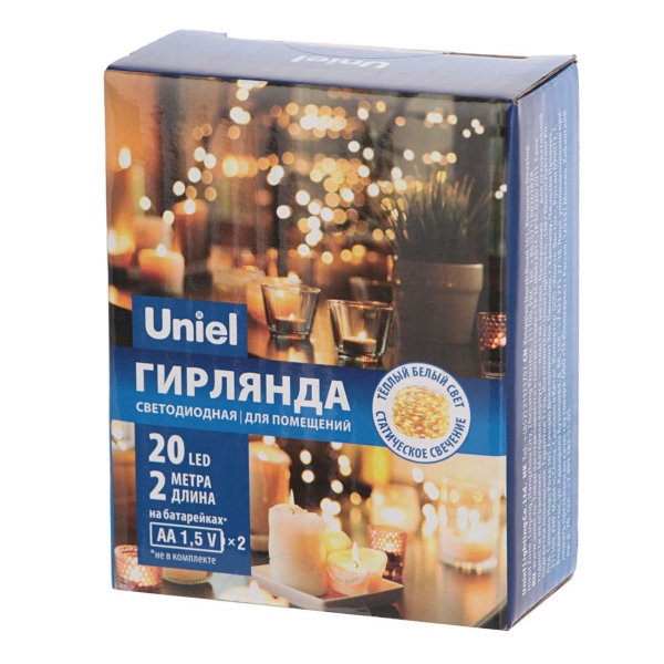 Количество светодиодов: 20, Тип управления: механический, Степень защиты: IP20, Длина гирлянды: 2 м