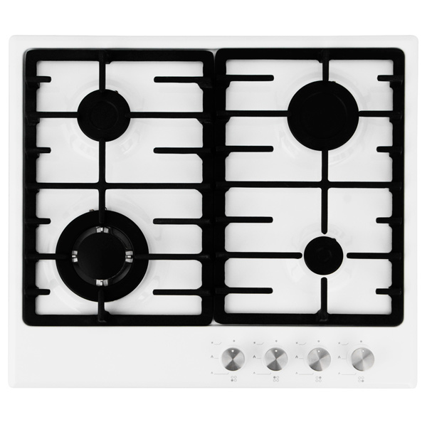 Размер ниши (Ш*Г): 560*490 мм, Электроподжиг конфорок: автоматический, Количество конфорок: 4, Газконтроль конфорок: Да, Минимальный огонь: Да, Размещение панели управления: спереди/справа, Материал варочной поверхности: металл, Решетка: чугунная, Цвет: белый