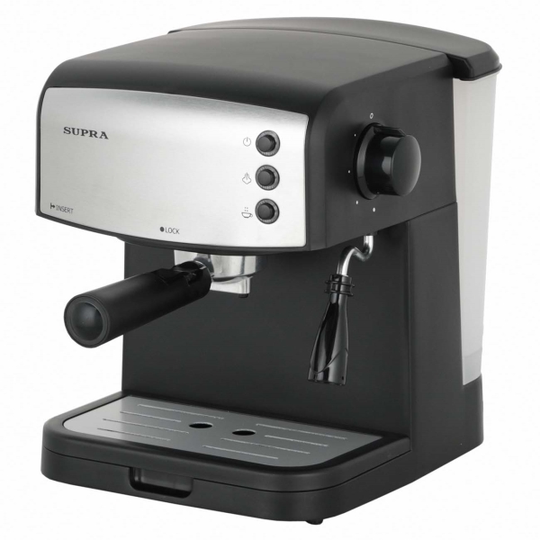 Максимальное давление: 15 Бар, Приготовление кофе "эспрессо": Да, Использование молотого кофе: Да, Регулировка крепости кофе: Да, Потребляемая мощность: 1000 Вт, Цвет: черный/серебристый, Габаритные размеры (В*Ш*Г): 27*26*24 см