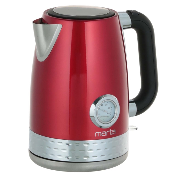Максимальный объём: 1.8 л, Потребляемая мощность: 2200 Вт, Материал корпуса: нержавеющая сталь, Тип нагревательного элемента: закрытая спираль, Фильтр от накипи: Да, Отключение при отсутствии воды: Да, Тип управления: механический, Вес: 1.14 кг
