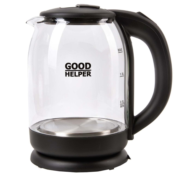 Максимальный объём: 1.8 л, Потребляемая мощность: 1500 Вт, Диапазон температур: 100 *С, Материал корпуса: стекло/ пластик, Тип нагревательного элемента: скрытый нагревательный элемент, Подсветка: Да, Отключение при отсутствии воды: Да, Тип управления: механический