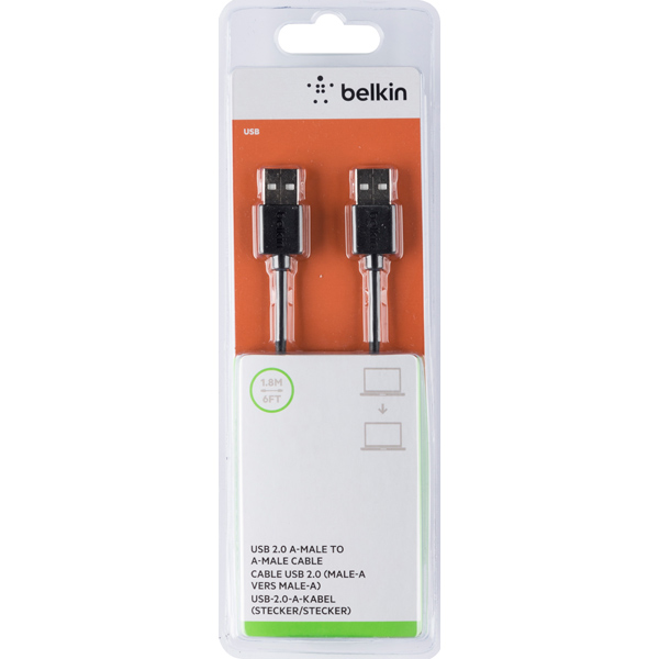 Тип кабеля: USB 2.0 тип A - USB 2.0 тип A, Длина кабеля: 1.8 м, Форма кабеля: круглый