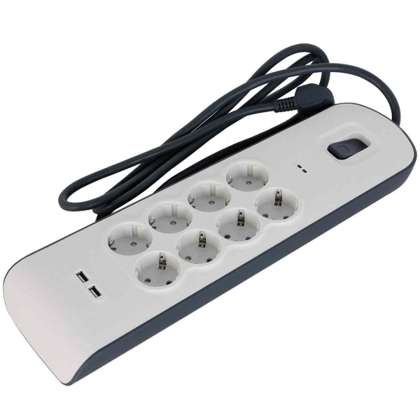 Максимальная нагрузка по мощности: 3680 Вт, Максимальный ток: 16 А, Количество розеток: 8, Длина сетевого шнура: 2 м, Фильтр импульсных помех: Да, Защита от перегрузки: Да, Защита от короткого замыкания: Да, Порт USB для зарядки устройств: 2 шт