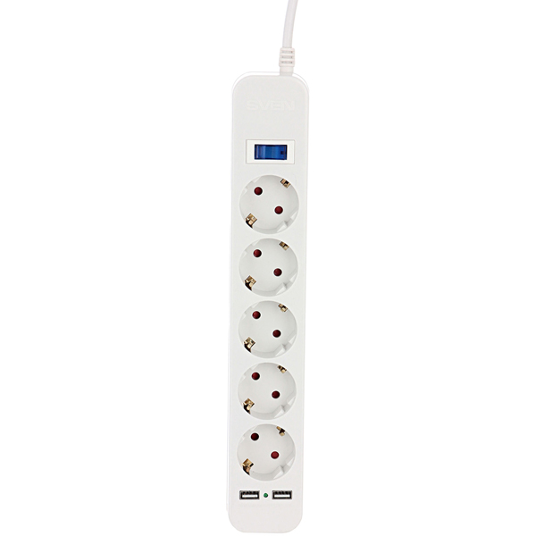 Sven SF-05LU 3,0м, 5 розеток, 2 USB, White (SV-017415)