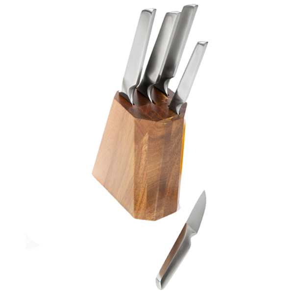 Страна: Китай, Назначение: для кухни, Вид ножа: скальпель, Предметов в наборе: 6 шт, Ножей в комплекте: 5, Материал лезвия: нержавеющая сталь, Материал ручки ножа: нерж. сталь, Материал подставки: дерево