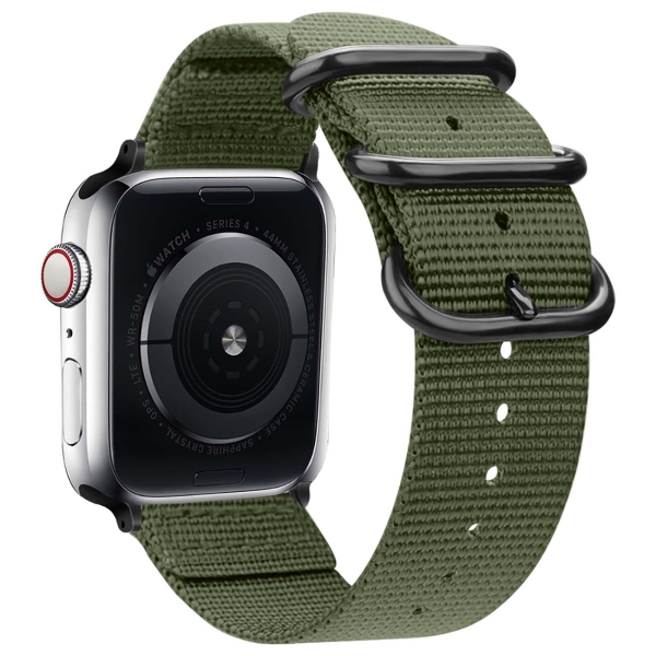 Серия: Canvas, Совместимость: Apple Watch 42 мм/ 44 мм, Обхват: 152-216 мм, Цвет ремешка: милитари, Материал ремешка: нейлон, Цвет застёжки: черный, Материал застёжки: нержавеющая сталь