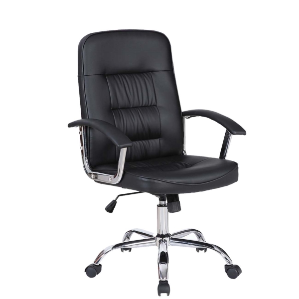 Материал сиденья: экокожа, Регулировка сиденья по высоте: Да, Газовый лифт: Да, Материал спинки: экокожа, Материал подлокотников: экокожа/хром, Количество колес: 5, Механизм качания: Да, Цвет: черный, Вес: 14 кг