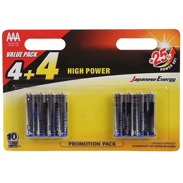 Страна: Китай, Щелочная(Alkaline) батарея: Да, Тип батареи: LR03 (AAA), Количество в упаковке: 8 шт, Рабочее напряжение: 1.5 В