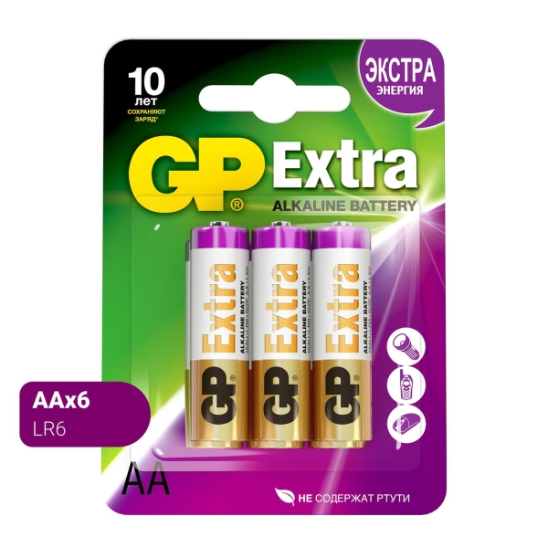 Страна: Китай, Щелочная(Alkaline) батарея: Да, Тип батареи: LR6 (AA), Количество в упаковке: 6 шт, Рабочее напряжение: 1.5 В