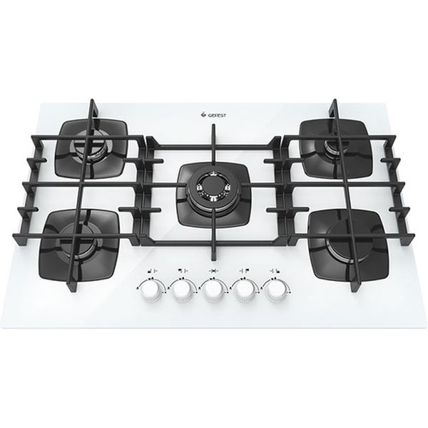 Электроподжиг конфорок: автоматический, Конфорка WoK: Да, Газконтроль конфорок: Да, Минимальный огонь: Да, Размещение панели управления: спереди, Материал варочной поверхности: закаленное стекло, Решетка: чугунная, Цвет: белый