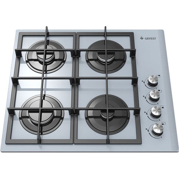 Электроподжиг конфорок: автоматический, Газконтроль конфорок: Да, Минимальный огонь: Да, Размещение панели управления: сбоку, Материал варочной поверхности: закаленное стекло, Решетка: чугунная, Цвет: серебристый